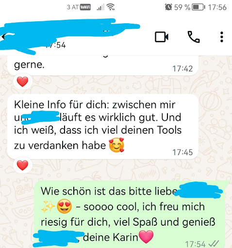 Nur Gruppenmitglieder erhalten vorab Zugang zu Karins beliebtesten Formaten – ideal, um in kleinen Schritten große Veränderungen in deiner Beziehung zu bewirken.